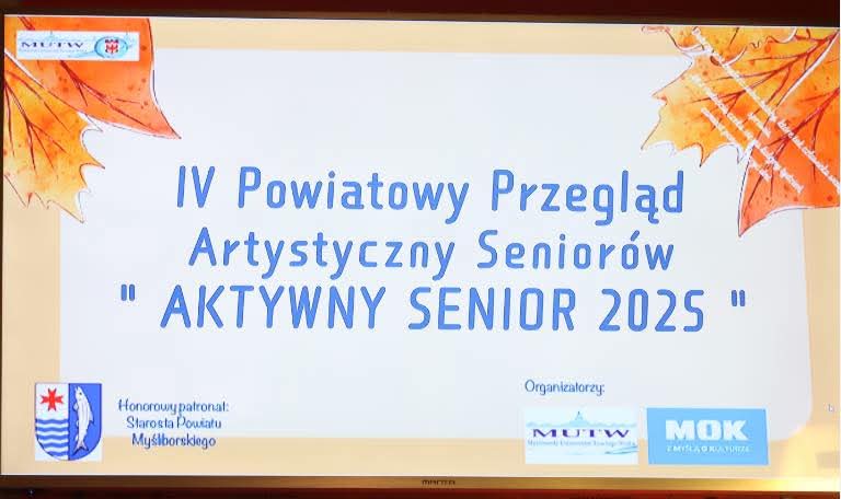 W dniu 14 listopada br zespół artystyczny Barlineckiego UTW „Pasja” uczestniczył IV Przeglądzie Twórczości Artystycznej Seniorów „Aktywny Senior” w Myśliborzu – organizowanym przez Myśliborski UTW. W przeglądzie uczestniczyły zespoły taneczne i wokalne z Barlinka, Myśliborza i Morynia. Zespół „Pasja” zatańczył 2 tańce (zgodnie z regulaminem) - Tango i Lipkę, za co otrzymał wielkie brawa i wyróżnienie za „elegancję i synchronizację ruchu oraz interakcję z publicznością” oraz puchar. Dziękujemy organizatorom – Myśliborskiemu UTW i p. Krystynie  Matuszak za kolejną wspaniałą imprezę.